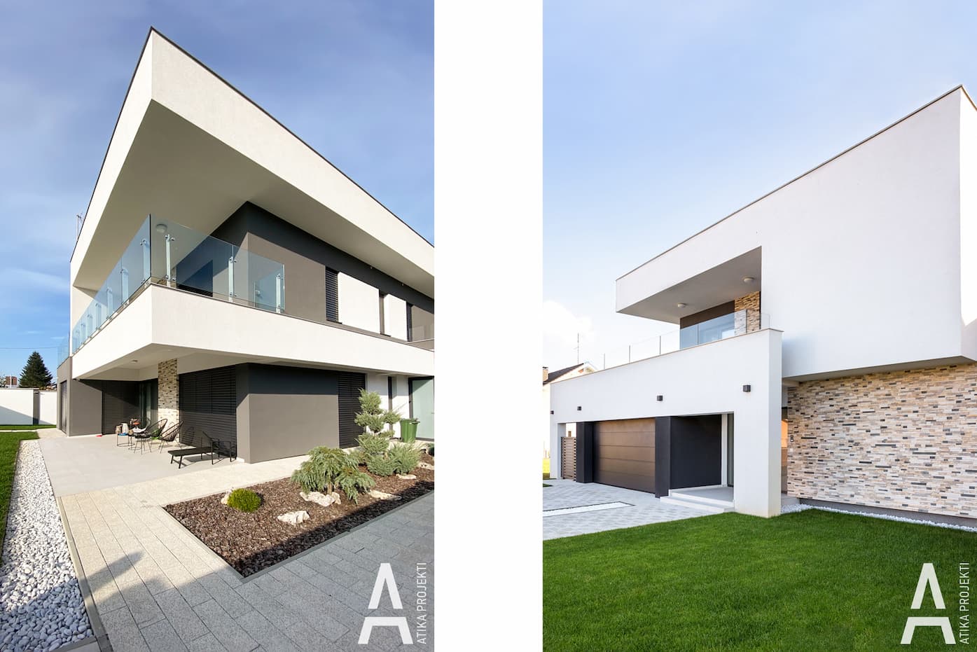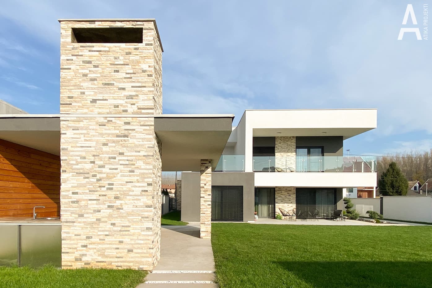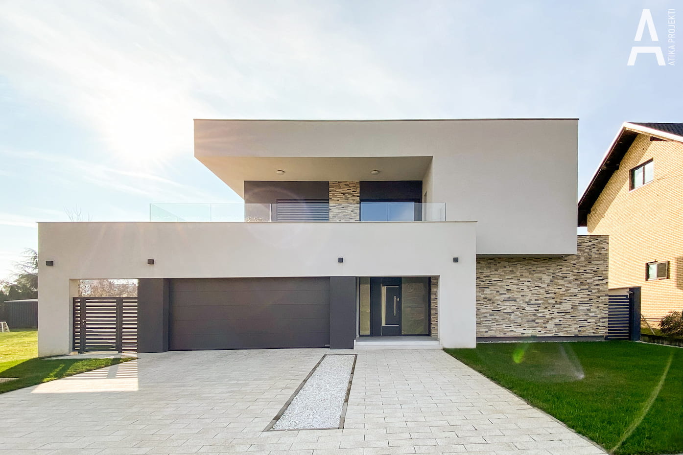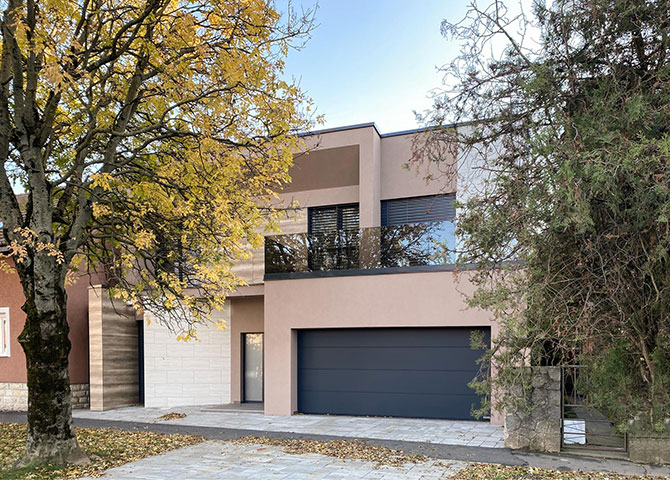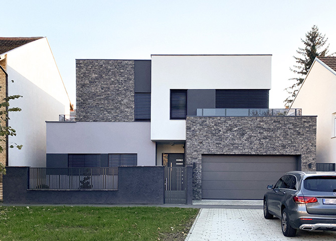 Obiteljska kuća smještena je u mirnoj stambenoj ulici u prigradskom naselju grada Osijeka. Parcela duljine regulacijskog pravca 20 metara omogućila je veću slobodu u oblikovanju, pa je kuća projektirana kao samostojeća sa orijentacijama na sve četiri strane svijeta.