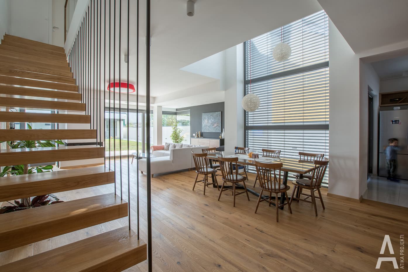 Iznad blagovaonice nalazi se zračni prostor koji vizualno povezuje prostor prizemlja i kata i kojim se stvara dojam prozračnosti i prostornosti. Tome pridonosi i već spomenuta razvedenost tlocrta, koja omogućuje osvjetljenje I prozračivanje većine prostorija kuće.